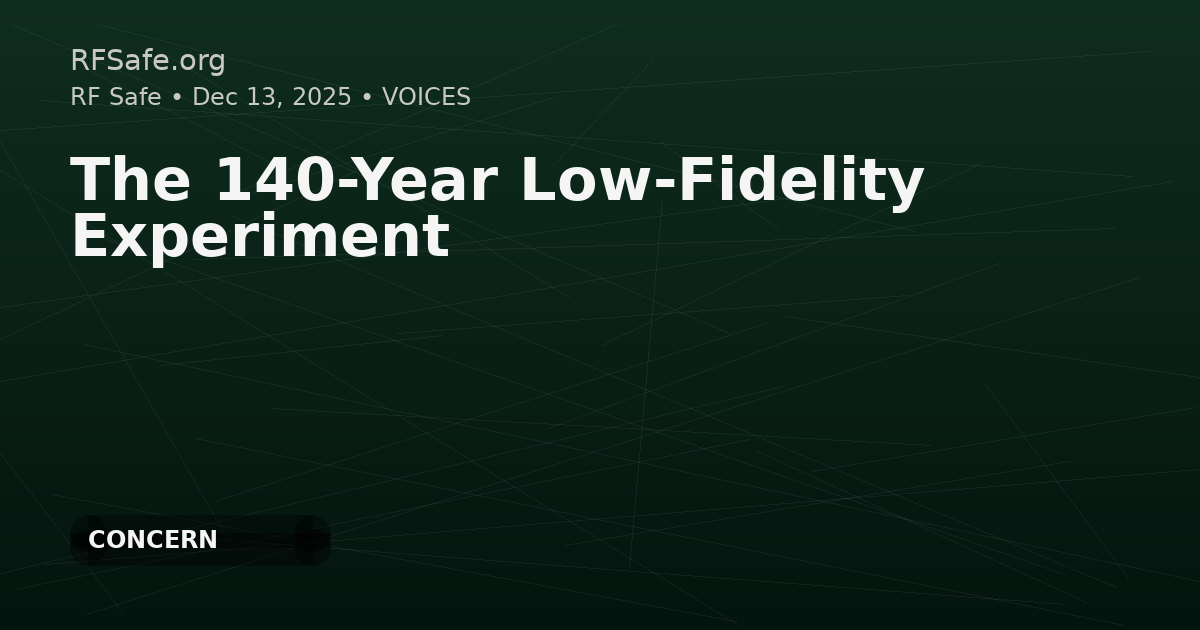 This RF Safe position piece argues that long-term exposure to “non-native,” low-fidelity electromagnetic environments (including man-made RF) can degrade biological timing and coherence, contributing to downstream issues such as immune dysregulation and oxidative stress. It frames this as a systems-level claim rather than asserting RF “causes” specific diseases, and it cites proposed biophysical mechanisms (e.g., coupling into dense tissues, membrane voltage-sensing domains, mitochondrial/redox pathways). The article also references Heinrich Hertz’s historical exposure to early radio experiments and a retrospective medical analysis of his illness, while stating it is not claiming RF caused his condition.