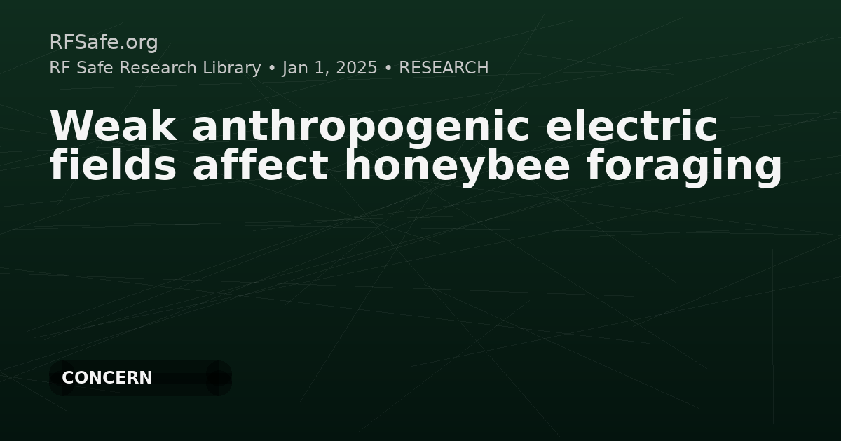 This animal ecology study reports that weak anthropogenic-like airborne electric fields can reduce honeybee floral landing rates. It reports deterrent effects for AC and positive DC fields, with no statistically significant effect for negative DC fields. The authors also report that electric fields measured near high-voltage power lines can match the levels that affected bees and extend tens of meters at foraging-relevant heights.
